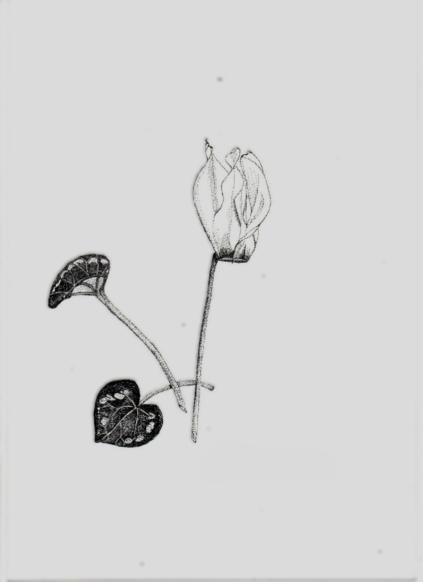 Ciclamino, Cyclamen persicum (bianco e nero inchiostro su carta)